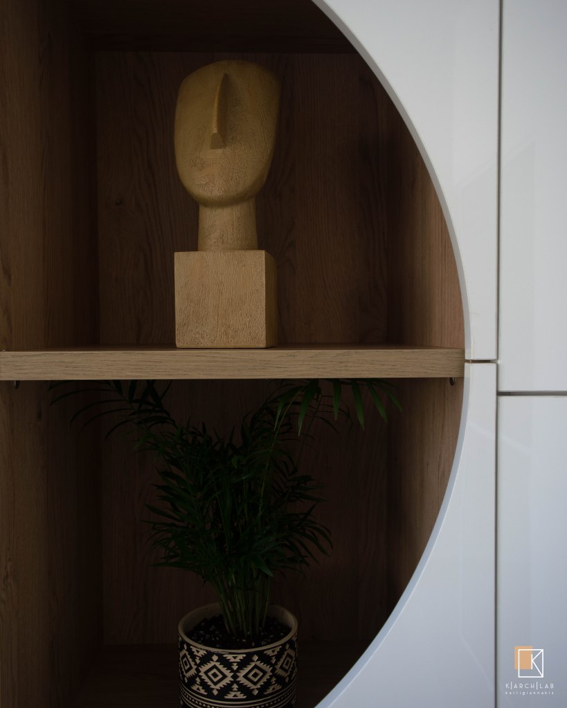 Κατά το σχεδιασμό, δόθηκε έμφαση στις λεπτομέρειες των ειδικών κατασκευών – όπως η βιβλιοθήκη του χώρου υποδοχής και τα custom made διακοσμητικά δέντρα – ώστε ο χώρος να αποκτήσει τη δική του «υπογραφή».